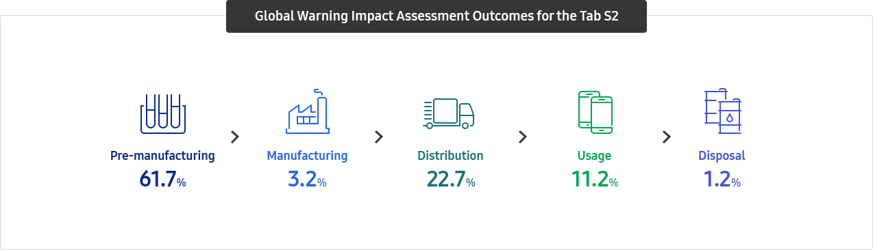 Samsung conducted a life cycle assessment for smartphones based on 12 environmental impact categories.